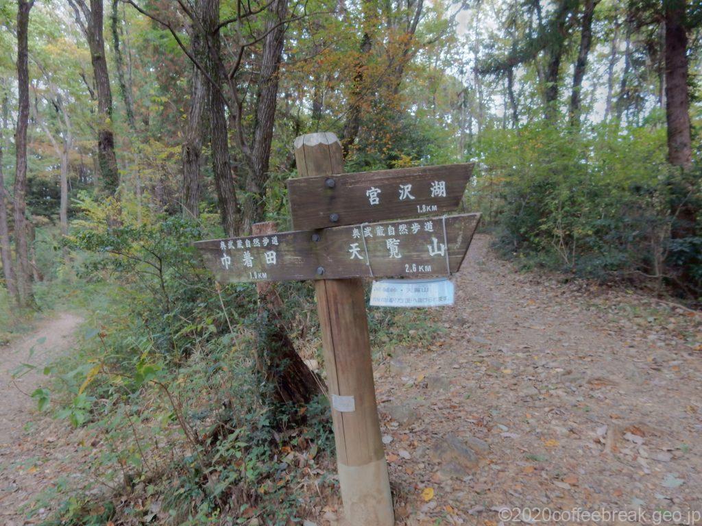高麗峠を過ぎるとすぐに分岐があります。道標にしたがって「宮沢湖」方面へ進みます。