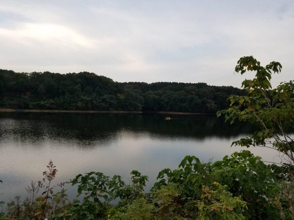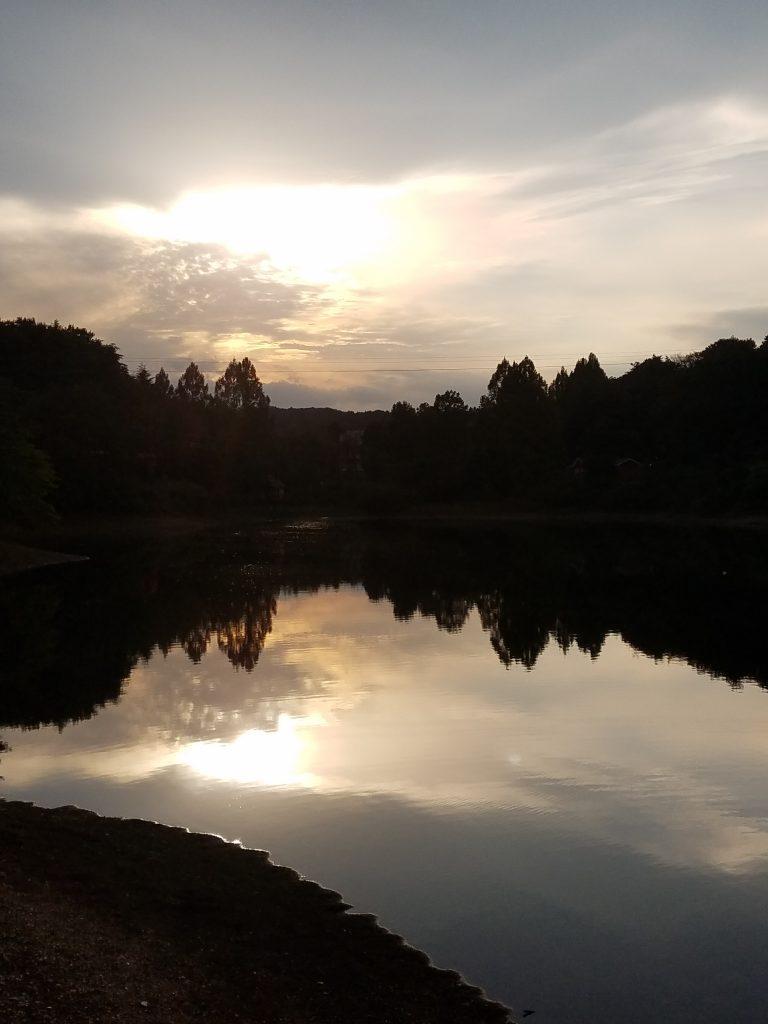 夕暮れがせまってきました。静かな湖面に景色がうつりこんで素敵。