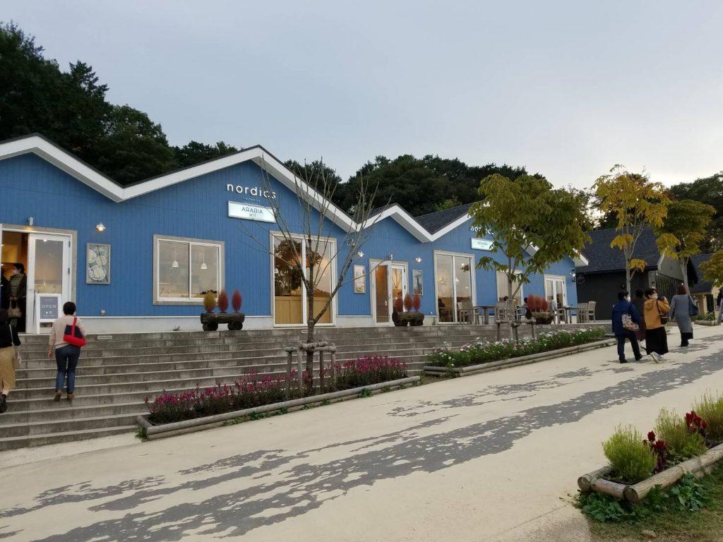 駐車場から歩いて行くと、まず見えてくるのがメッツァビレッジ。こちらは入園無料です。当初はメッツァビレッジもムーミンバレーパークも有料だと思っていたので「わざわざ高い入園料を支払ってまではねぇ」と宮沢湖は敬遠していたのですが、よくよく調べてみると手前のメッツァビレッジは無料でした。