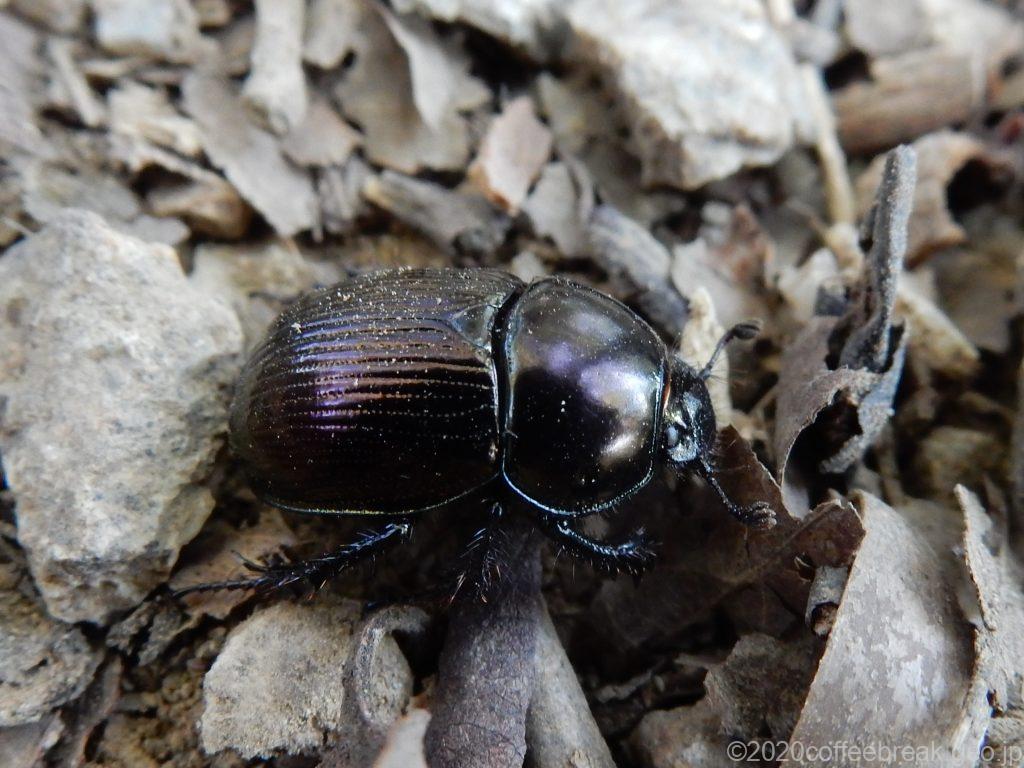 コガネムシ(?)もいました。石の上から転げ落ちて土の上にひっくり返って足をバタバタさせていました。