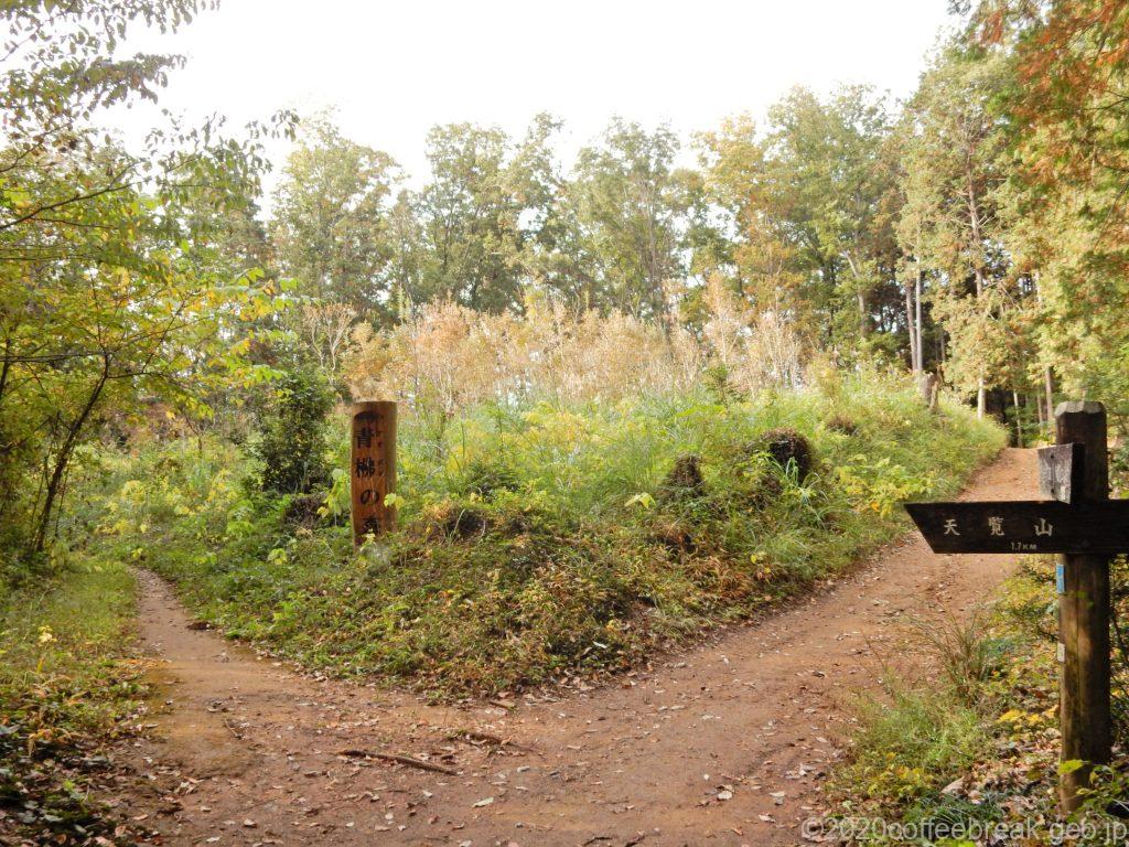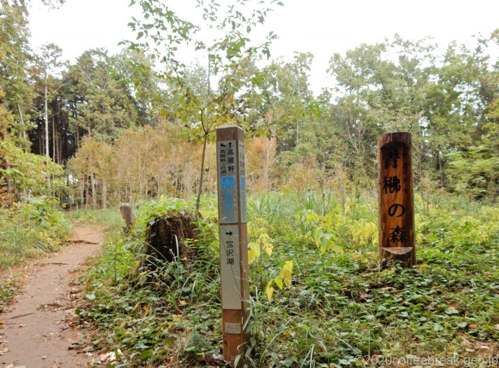 少し進むと「青梻(あおだも)の森」の分岐に出ます。高麗峠方面へまっすぐ進みます。