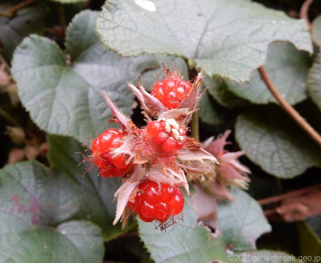 「青梻の森」へ戻ってきました。足元にはイチゴの赤い実が可愛らしい。せっかくなのでひとつ口に入れてみました。うん、あっさりした味。特に甘いわけではないんですが、山で疲れたときなんかには、こういうのがすごく有難いことがありますよね。