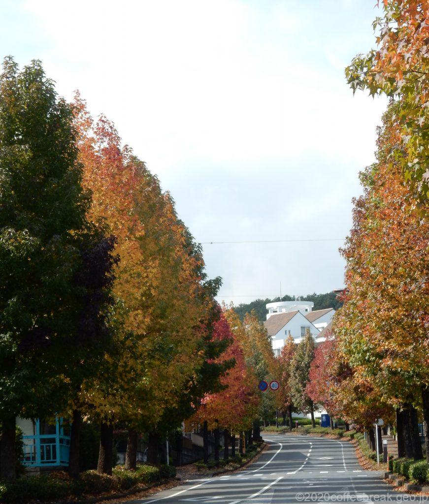 なんだかここだけ外国みたい。このモミジバフウ、街路樹などは高さ25メートルくらいになりますが、野生種だとなんと45メートルにもなるそうです。高さ45メートルのモミジバフウが紅葉したら圧巻でしょうね。見てみたい。